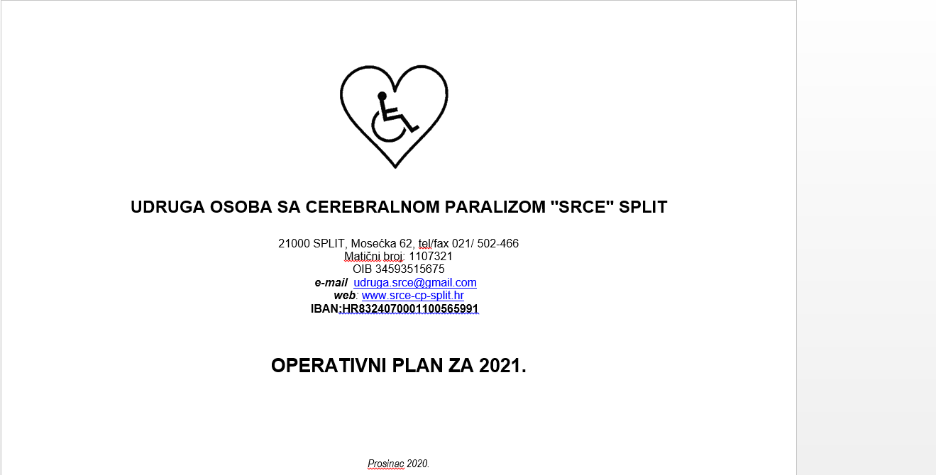 Aktivnosti / Izvještaji / Novosti 19. December 2020. Operativni plan Udruge “Srce” Split za 2021. godinu